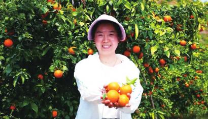 梁春华展示柑橘。罗江区融媒体中心供图