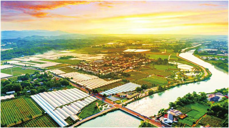都江堰精华灌区粮果产业园俯瞰图。