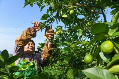 11月13日,阆中市柏垭镇淳风村的近2000亩柠檬进入丰收季,工人们在果园里忙着采摘。