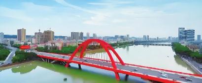 1992年,德阳市委、市政府吹响“再造一个德阳”号角。决定以重装工业为依托,加快城市化进程。大力开发地域空间潜力巨大的绵远河(旌湖)东区,是这份雄伟蓝图的重要一笔。此时,仅有一座凯江桥的状况成为河东开发的最大瓶颈。于是,市委、市政府将兴建系列跨河(湖)大桥列入重要战略。1995年金秋,位于城市主轴线的彩虹桥竣工,一举贯通东西城市主干道。此后,陆续兴建了珠江桥、岷江桥、黄河桥、青衣江大桥、嘉陵江大桥……迄今,已有12座大桥凌波飞跨。其建筑风格颇具匠心,各显特色。既充满现代时尚感,又融入了重装工业符号、三星堆图腾等德阳元素。每一座桥,都缀连着一条贯通东西的干道,昔日东西城区一水之隔的梗阻荡然无存。东城区随之迸发蓬勃活力:街区路网纵横交错,四通八达。国家级经济技术开发区布局一锤定音,一个个重点项目接踵入园,新产业集群迅速形成。