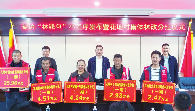 2月4日,立春。在盐边县红果彝族乡,盐边“林钱包”小程序发布。随后举行的花地村集体林改分红仪式上,村民们现场领取了合计40.11万元的现金分红。