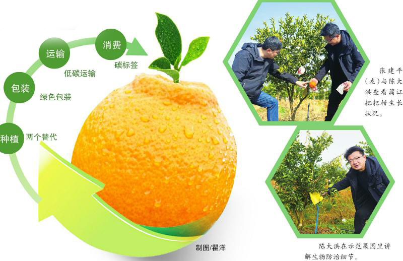 蒲江县商务和物流局局长袁兴林介绍,县里一边给果农发放“两个替代”补贴,一边把“碳标签”和绿色金融挂钩,明确“谁低碳,谁就能享受更低的贷款利率”。