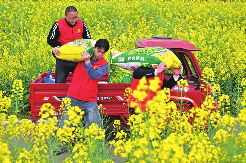 “春耕服务队”为缺劳户搬运代购的化肥。 “春耕服务队”上门为缺劳户送代购的种子。 特约通讯员 潘帅 摄