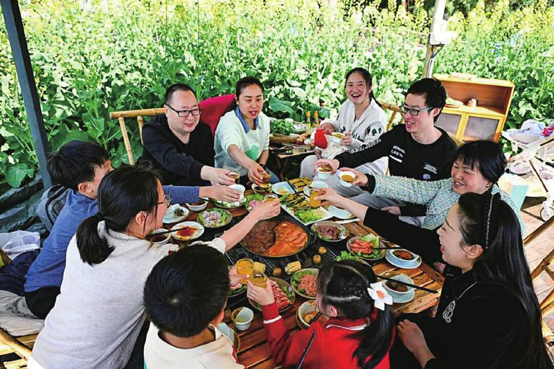 美景相伴,美食不可或缺。花田旁,沸腾的红油火锅咕嘟作响。“今年早春,客人明显比往年同期增多,本周末的花田火锅已被大量预订。”花田火锅主理人陈娟欣喜地说。