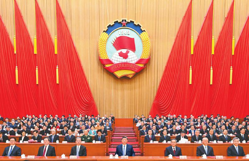 3月11日上午,中国人民政治协商会议第十四届全国委员会第四次会议在北京人民大会堂闭幕。这是习近平、李强、赵乐际、蔡奇、丁薛祥、李希、韩正在主席台就座。 新华社记者 燕雁 摄