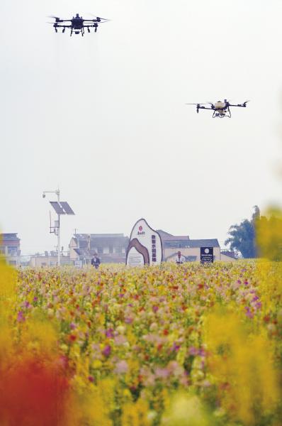 近日,在眉山市彭山区公义镇欣荣村的500亩彩色油菜花里,植保无人机机手正开展精准化病虫害防治。 眼下正值彩色油菜花花期管理关键期,也是菌核病、蚜虫等病虫害易发高发阶段,田间管护直接关系油料产量与品质。当地及时开展精准化病虫害统防统治,助力油菜丰产丰收。 特约通讯员 翁光建 摄