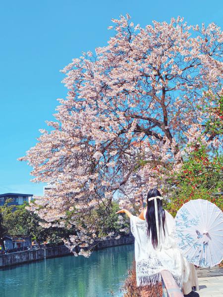 应该用怎样的词来形容泡桐花开呢?或许应该是:清艳。 蓝天下,泡桐花与城市建筑构成妙不可言的旖旎调性。 泡桐花与汉服相映成趣,构成了季节的华章。 锦江边,泡桐花一开,路过的人们纷纷用镜头记录这繁花盛开的春天。 一树繁花照影来。