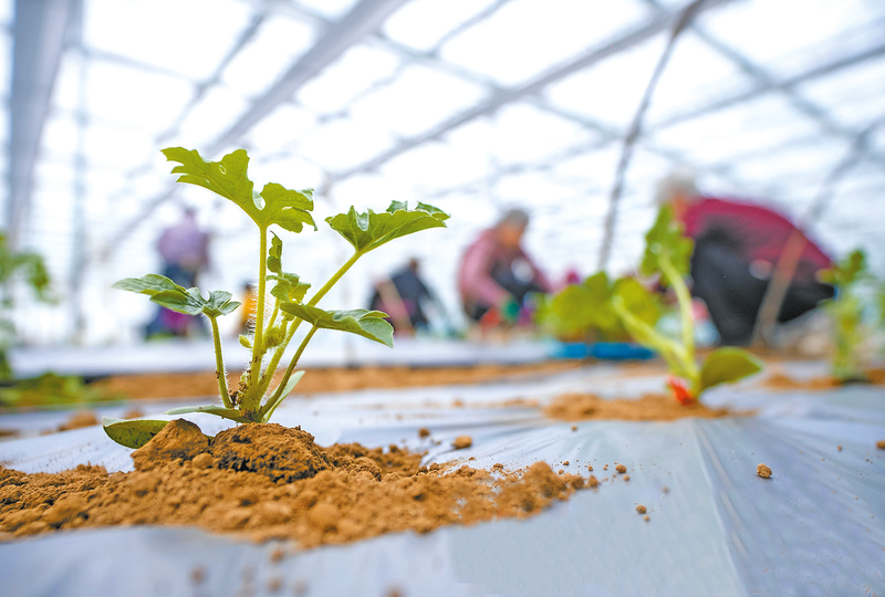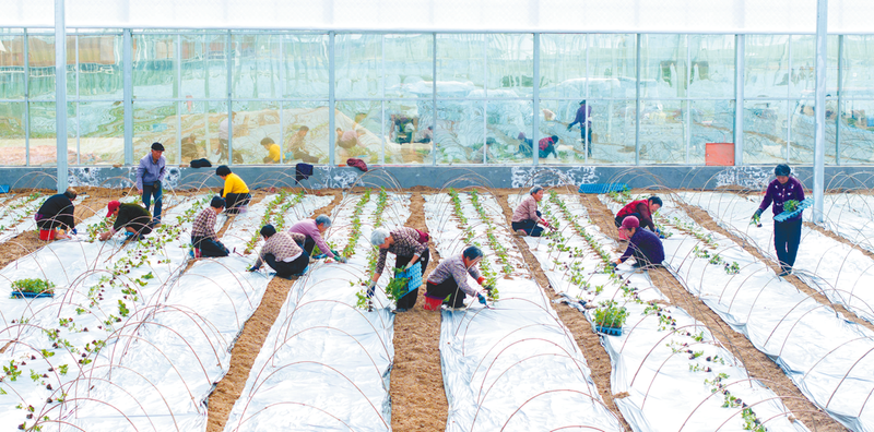 2月3日,在西平县王阁村的河南光合农业科技有限公司蔬菜基地,一排排温室大棚在冬日的阳光下熠熠生辉。大棚内暖意融融,数十名农户弯腰俯身,动作娴熟地进行西瓜秧苗移栽工作。他们手捧嫩绿壮实的瓜苗,植入已起垄覆膜的土地中,压土、扶正、浇水……一系列工序紧凑而熟练,展现出一幅生动的春耕图景。 (见习记者 赵永涛)