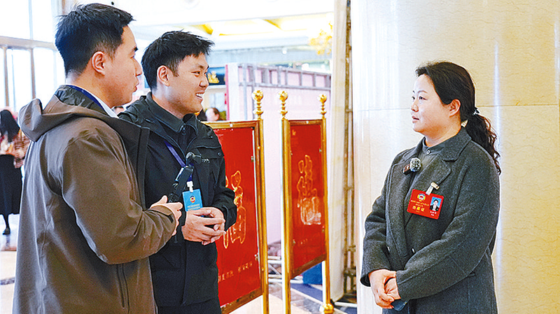 ▲政协委员在接受记者采访。(全媒体记者 张建/摄)