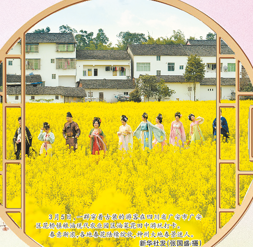 3月7日,游客在云南昆明动物园内拍照打卡。 新华社发(郑益/摄)