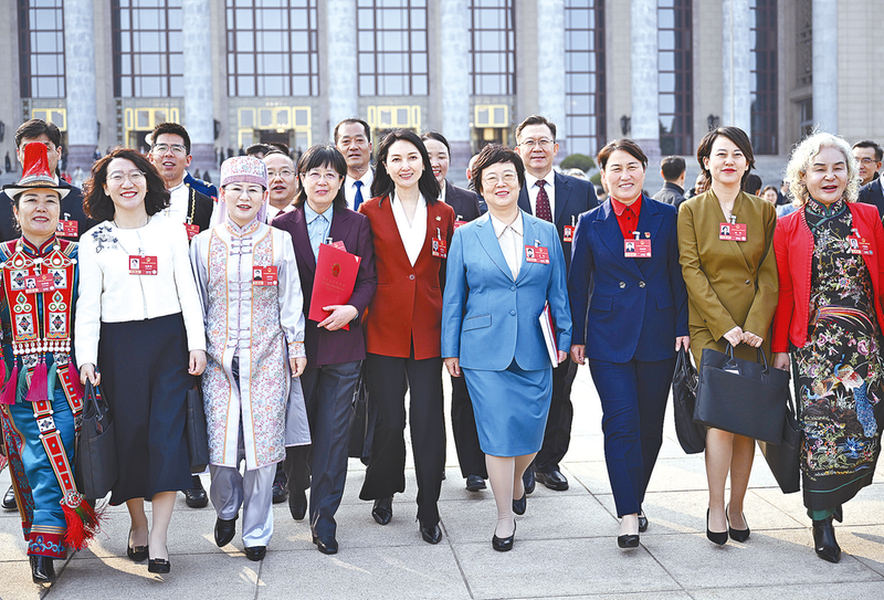 3月12日,第十四届全国人民代表大会第四次会议在北京人民大会堂举行闭幕会。这是闭幕会后,代表们走出人民大会堂。(新华社记者 蔡湘鑫/摄)