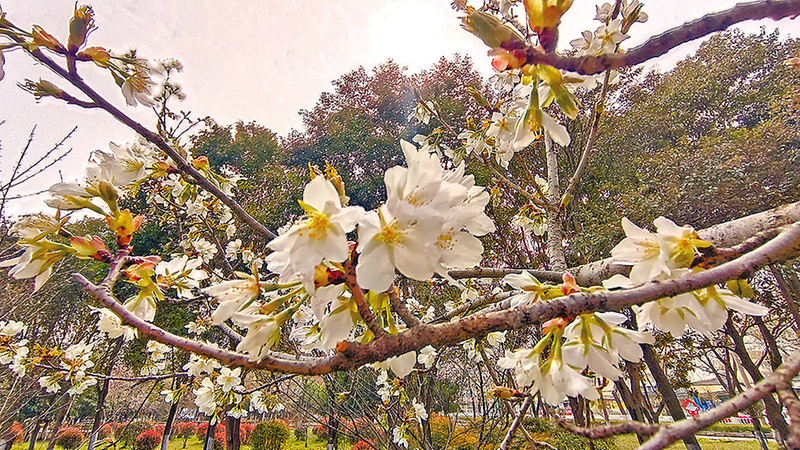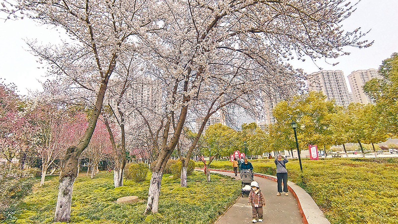 春风送暖,百花争艳。3月19日,记者在驻马店市区世纪广场看到,不同品种的樱花交错盛开,粉白与绯红相映成趣,缀满枝头,如云似霞,美不胜收。微风拂过,花瓣轻轻摇曳,落英缤纷,浪漫唯美,吸引众多市民前来踏青游览、拍照打卡,尽享春日浪漫美景。 (全媒体记者 王永良)