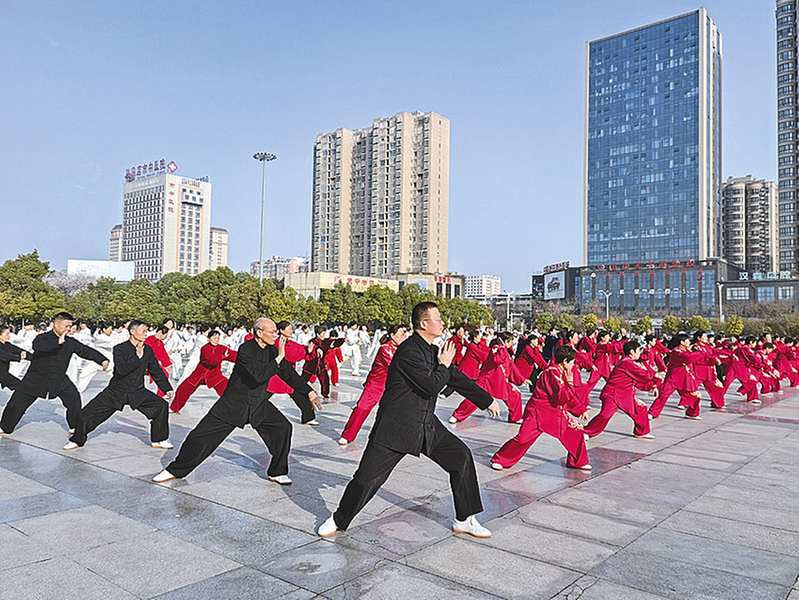 本报讯(文/图 全媒体记者 房满地)3月21日,首个“国际太极拳日”,以“健康生活,太极同行”为主题的太极拳展演活动在市区世纪广场举行(如图)。本次活动由驻马店市体育总会、驻马店市体育事业发展中心承办,驻马店市陈氏太极拳研究会协办,全市15支代表队、300多名太极拳爱好者共同参与。 活动伊始,驻马店市陈氏太极拳研究会会长赵松峰带领太极拳爱好者共同演练六首四象功,动作行云流水、刚柔并济,将阴阳平衡、天人合一的理念融入一招一式。随后,驻马店市各站点代表队依次登场,带来太极拳、太极剑、太极扇、太极刀等精彩纷呈的特色节目,尽显太极柔中寓刚、动静相宜的精髓,展现出太极文化的深厚底蕴与我市群众昂扬向上的精神风貌,赢得现场观众阵阵掌声。 “太极拳练的是拳,养的是心,强的是体。”赵松峰表示,希望以此次活动为契机,让广大太极拳爱好者互相学习、共同进步,持续推动太极拳在驻马店落地生根、发扬光大,让这项传统运动惠及更多群众,成为全民健康生活的重要载体。