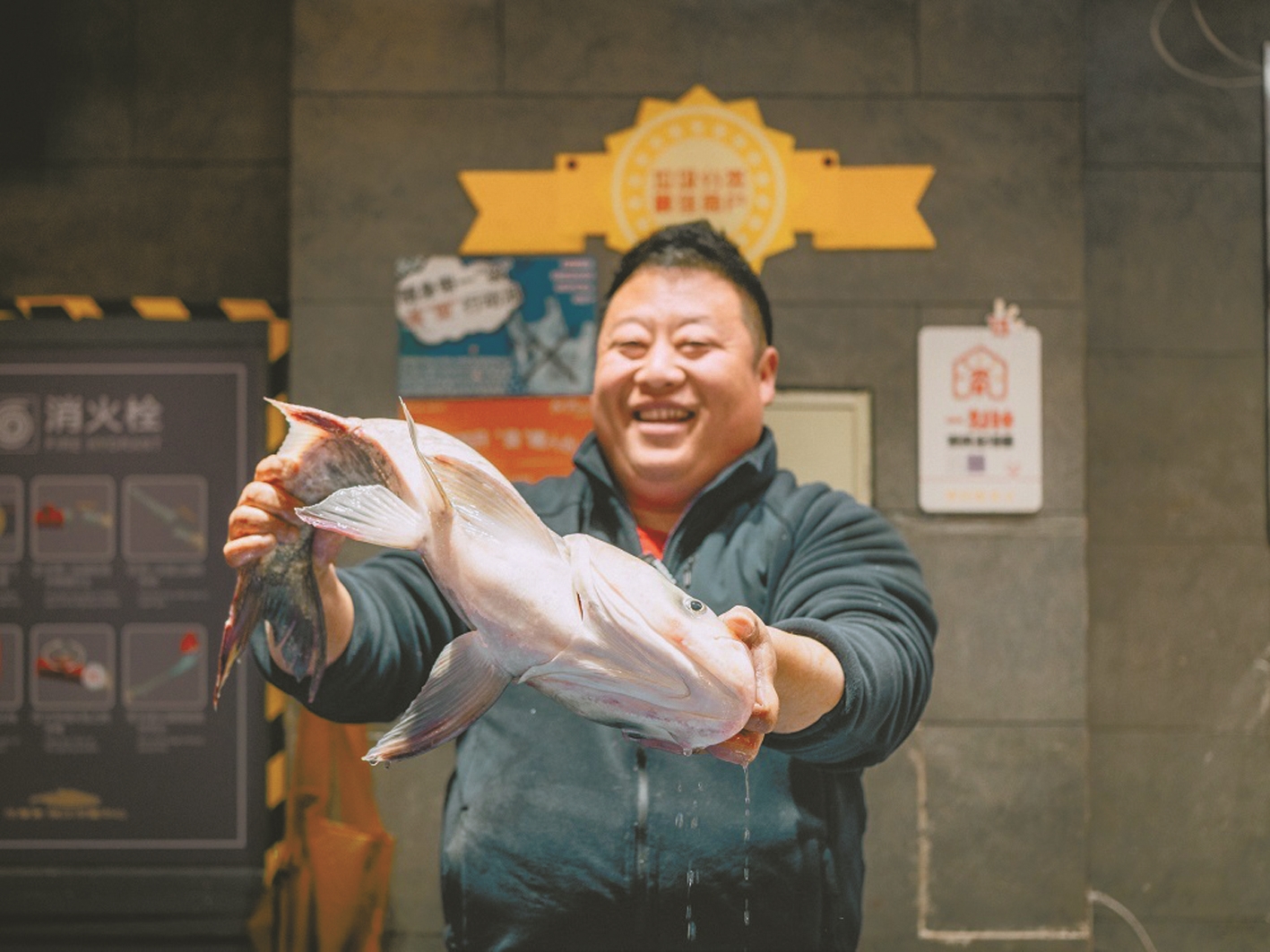 卖鱼的张松皊提供了水库鱼。能在菜市场办“年夜饭”,他直呼“高兴”!张松皊是菜市场的第一批经营户。他说,办年夜饭的念头已有两年了,直到去年下半年,菜市场里开起了“乐小馆”并推出代炒业务后,才决定付诸实践。