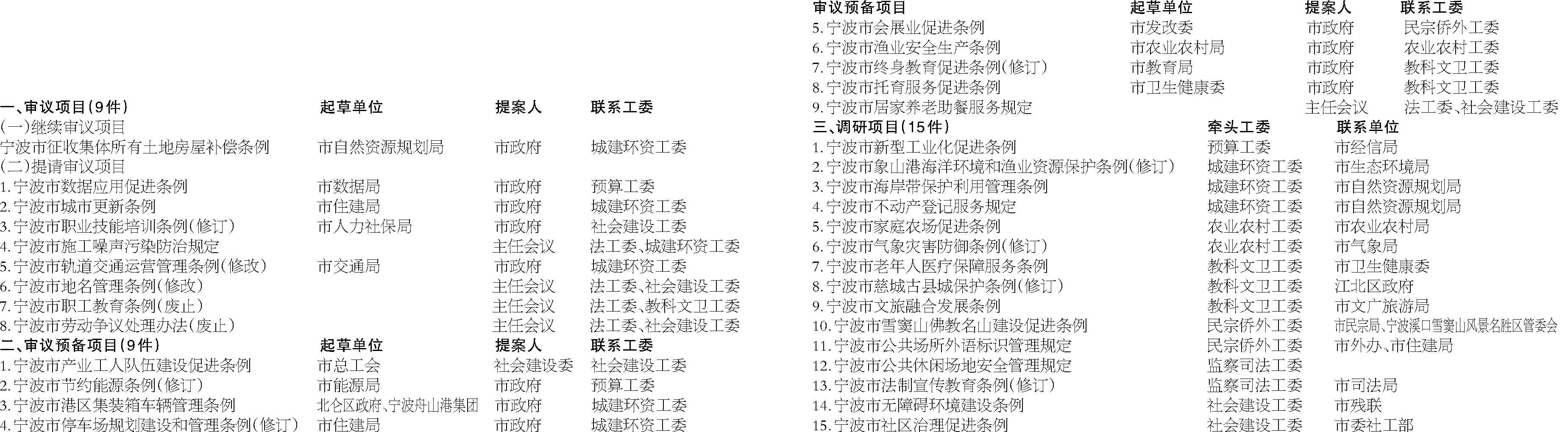 宁波市人大常委会2025年立法计划
