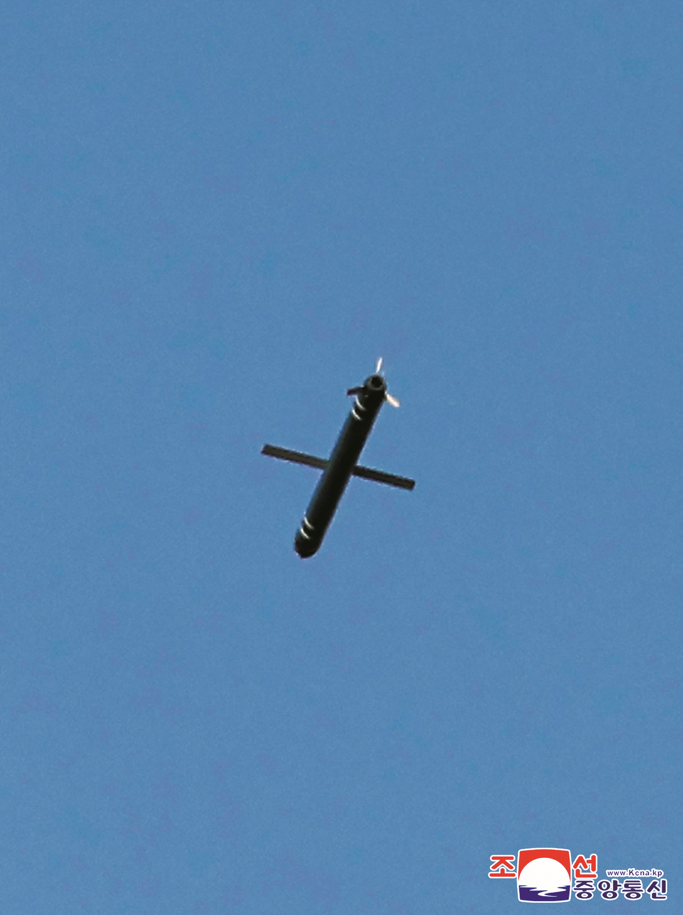 朝中社1月26日报道,朝鲜导弹总局25日进行了海对地战略巡航制导武器试射,朝鲜劳动党总书记、国务委员长金正恩观看了武器系统试射。这是朝中社发布的导弹在空中飞行的画面。