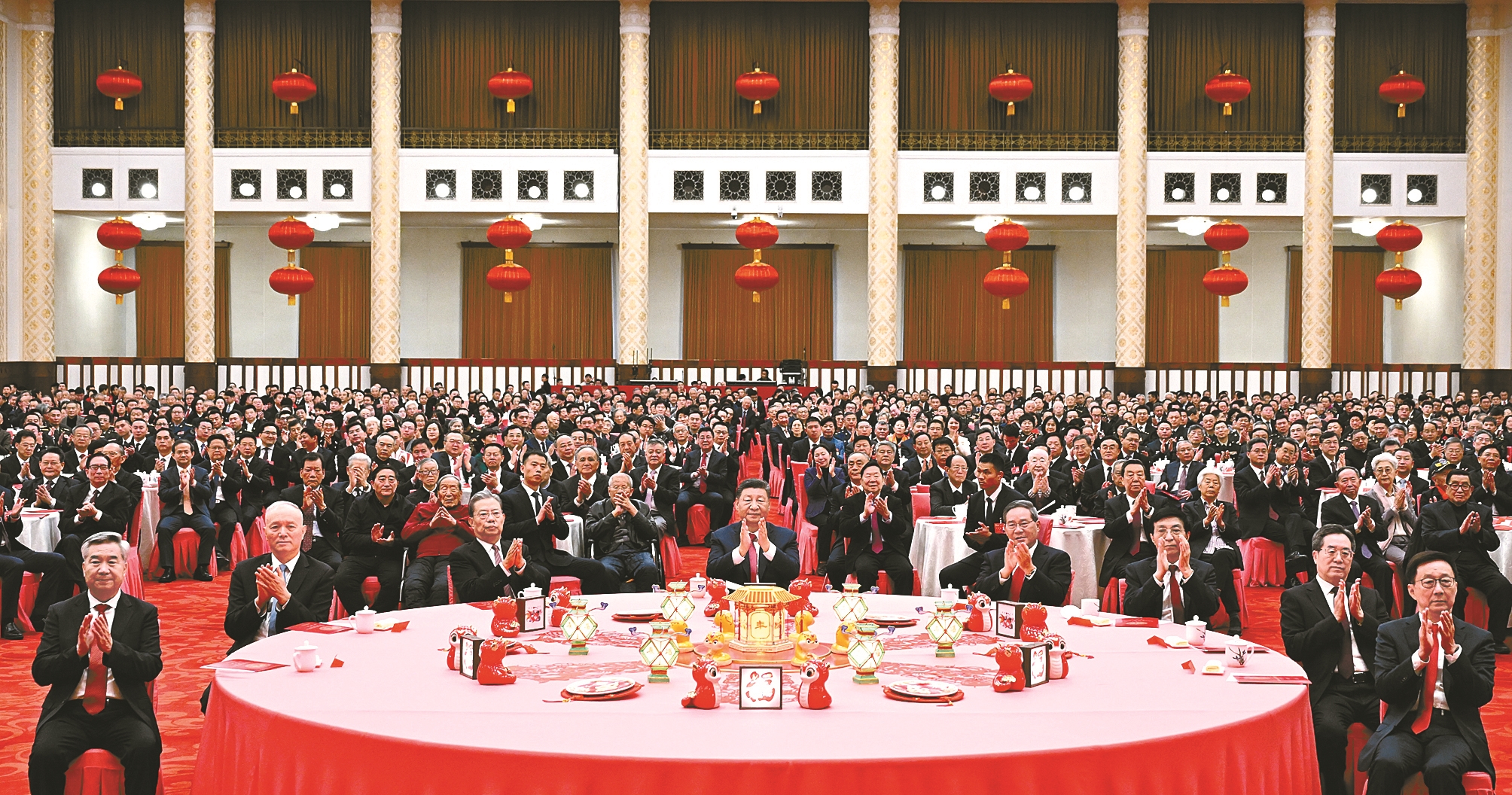 1月27日,中共中央、国务院在北京人民大会堂举行2025年春节团拜会。党和国家领导人习近平、李强、赵乐际、王沪宁、蔡奇、丁薛祥、李希、韩正等同首都各界人士欢聚一堂、共迎佳节。(新华社记者 谢环驰 摄)
