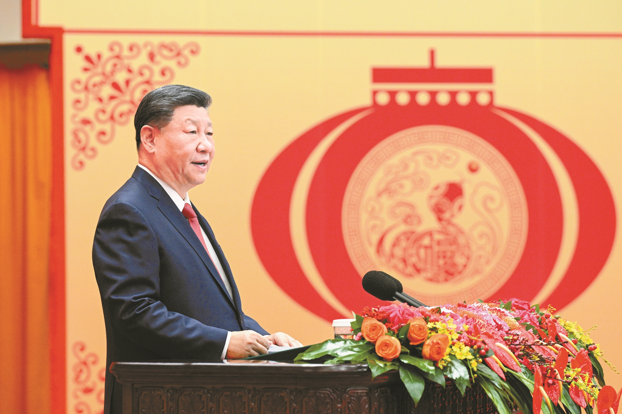 1月27日,中共中央、国务院在北京人民大会堂举行2025年春节团拜会。中共中央总书记、国家主席、中央军委主席习近平发表讲话。(新华社记者 李学仁 摄)