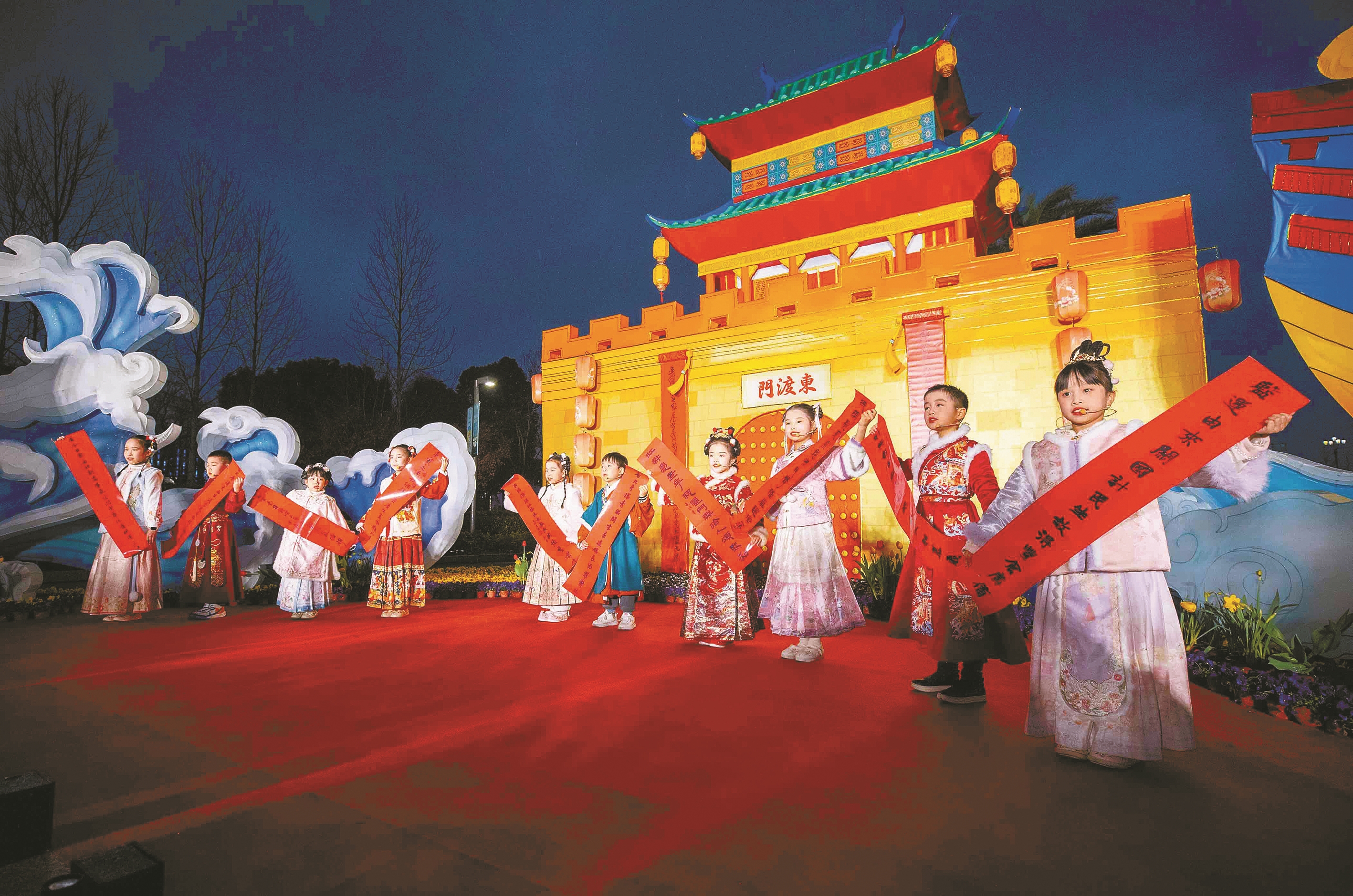 本报讯(记者沈天舟 通讯员裘保莉)这几天,罗城六门以花灯形式重现,罗城内又新增一处打卡地标。此次布置的罗城六门花灯将保持一个半月,每日17时30分准时亮灯,市民和游客可以前往观赏,感受千年罗城的独特魅力与浓厚的节日氛围。
