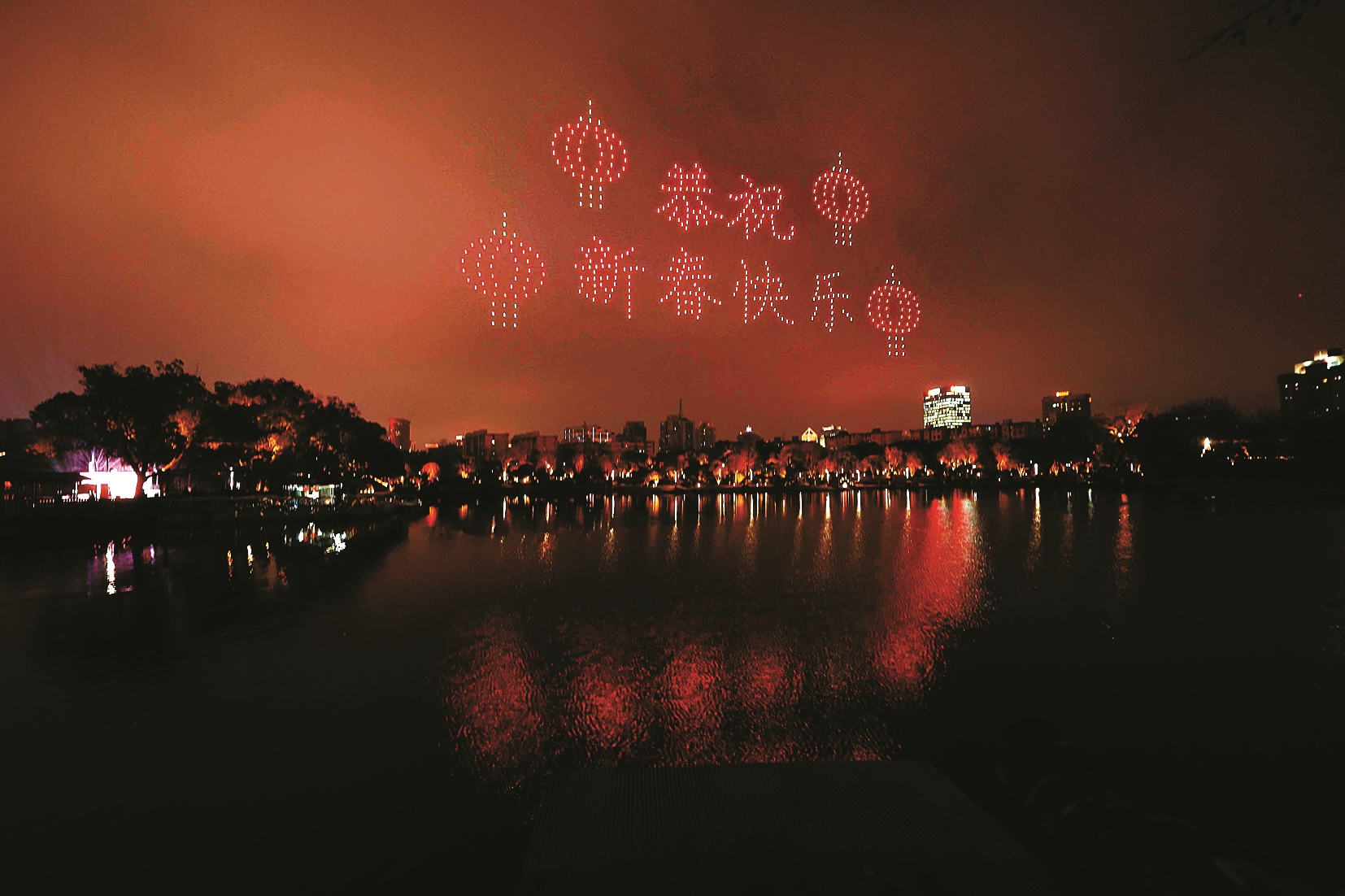 近日,罗城上空上演无人机迎新秀。(陈结生 张思祺 摄)