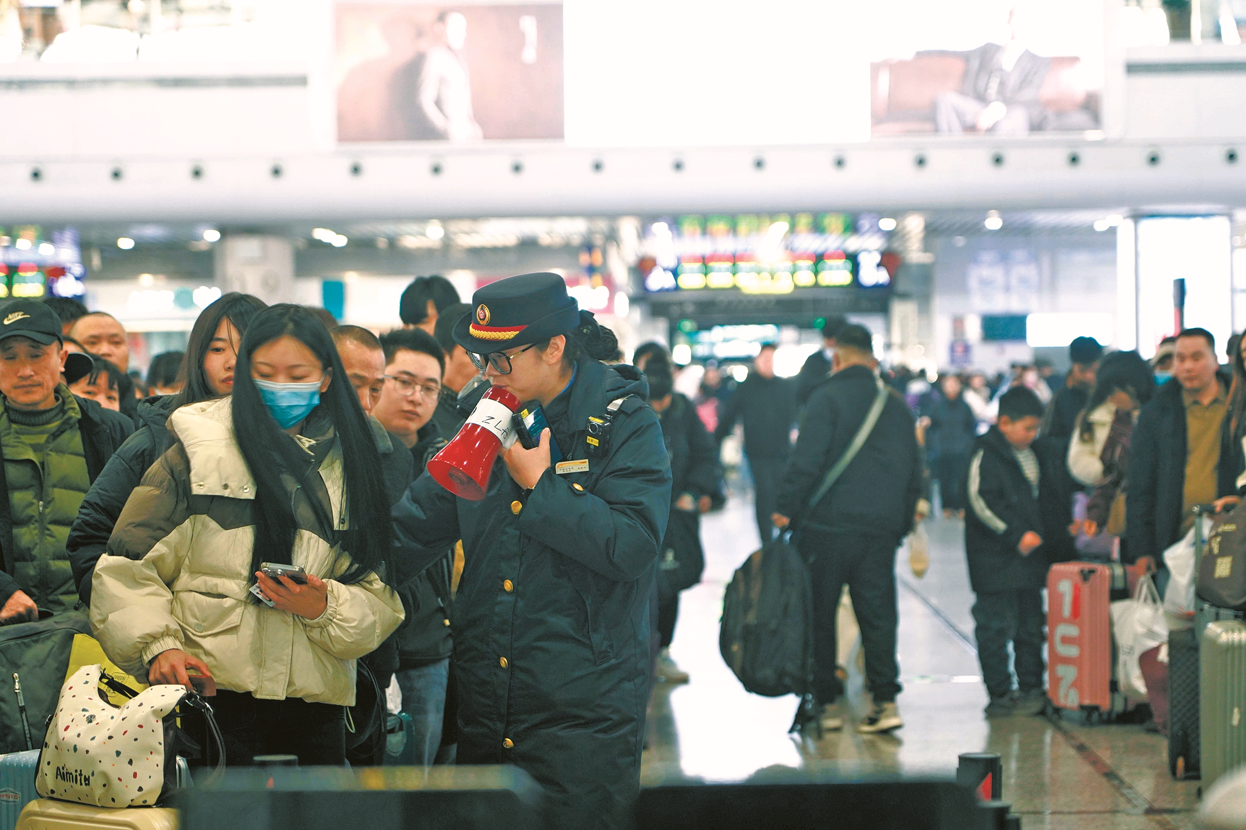 “下一波客流高峰预计在元宵节前后,到达旅客9万人次,同比增长1.1%。”铁路宁波站相关负责人介绍,今日铁路宁波站增开14趟列车,方便安徽、江西等方向的旅客回甬。(沈莉 徐峰 摄)