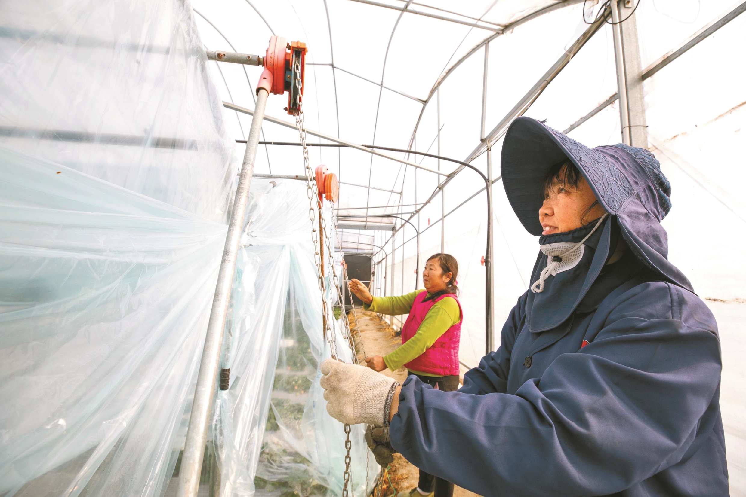 “草莓的生长适宜温度在15℃~25℃,开花期温度过低会导致花药无法开裂,影响授粉和产量。”海曙区农业农村局农艺师谭玉梅介绍,“棚内增挂薄膜可以有效增温,减少低温对其生长的不利影响。”