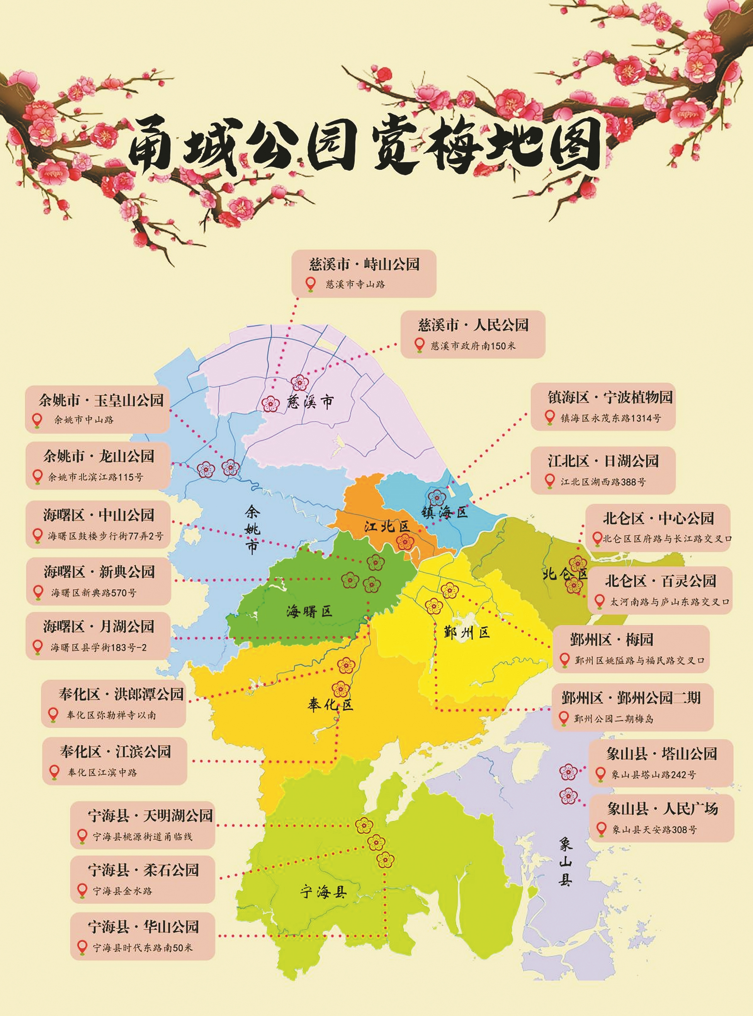 哪里的梅花开得最美,哪里的梅园更具意趣?园林部门工作人员特地制作了赏梅地图,趁年味未消,大家跟着攻略,到城区公园、到郊区梅园,来一场赏梅之旅吧。
