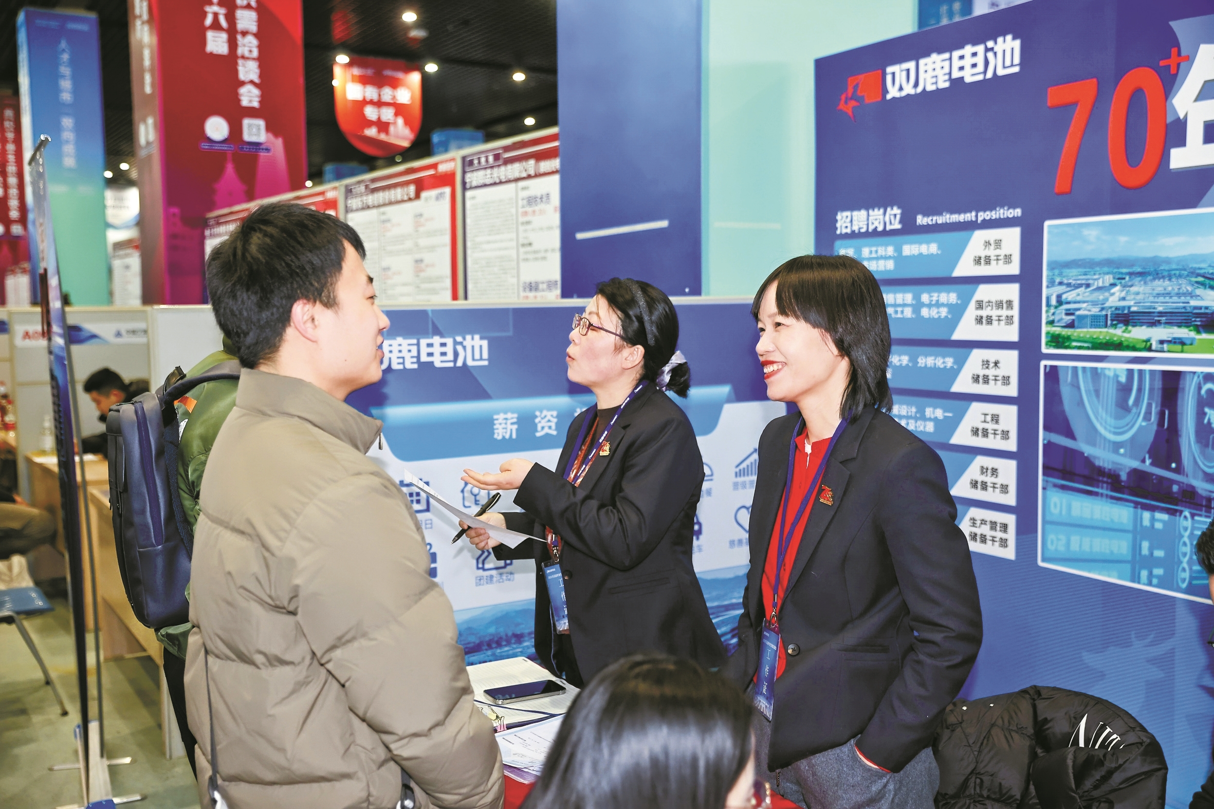 此外,一些颇为新潮的“小众赛道”也纷纷亮相。二次元设计师、毛绒设计师、笔袋设计师……在广博集团股份有限公司的摊位前,一系列亮眼的岗位吸引了不少“Z世代”求职者的目光。“面对‘谷子经济’热潮,今年我们计划开发更多二次元新品,而这需要引进更多适配的人才。”企业人力资源总监张女士表示,为招引人才,企业不仅开出了具有竞争力的薪资,还将提供完善的培养渠道和成长路径。