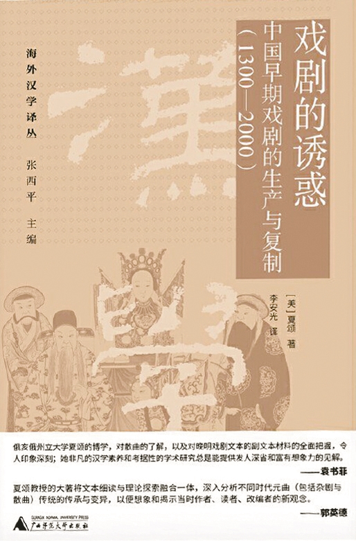 《戏剧的诱惑》的作者夏颂追溯了过去五百多年间文人学士、编辑、出版商以及翻译者给予一些元杂剧著名文本的重大影响,从社会政治、文化意识形态的视域考察元杂剧在元明清三代被不断改写、重构的历史(版本)演变,详尽地探讨了在后期发展的流动语境中元杂剧文本的改写、再生产等问题。