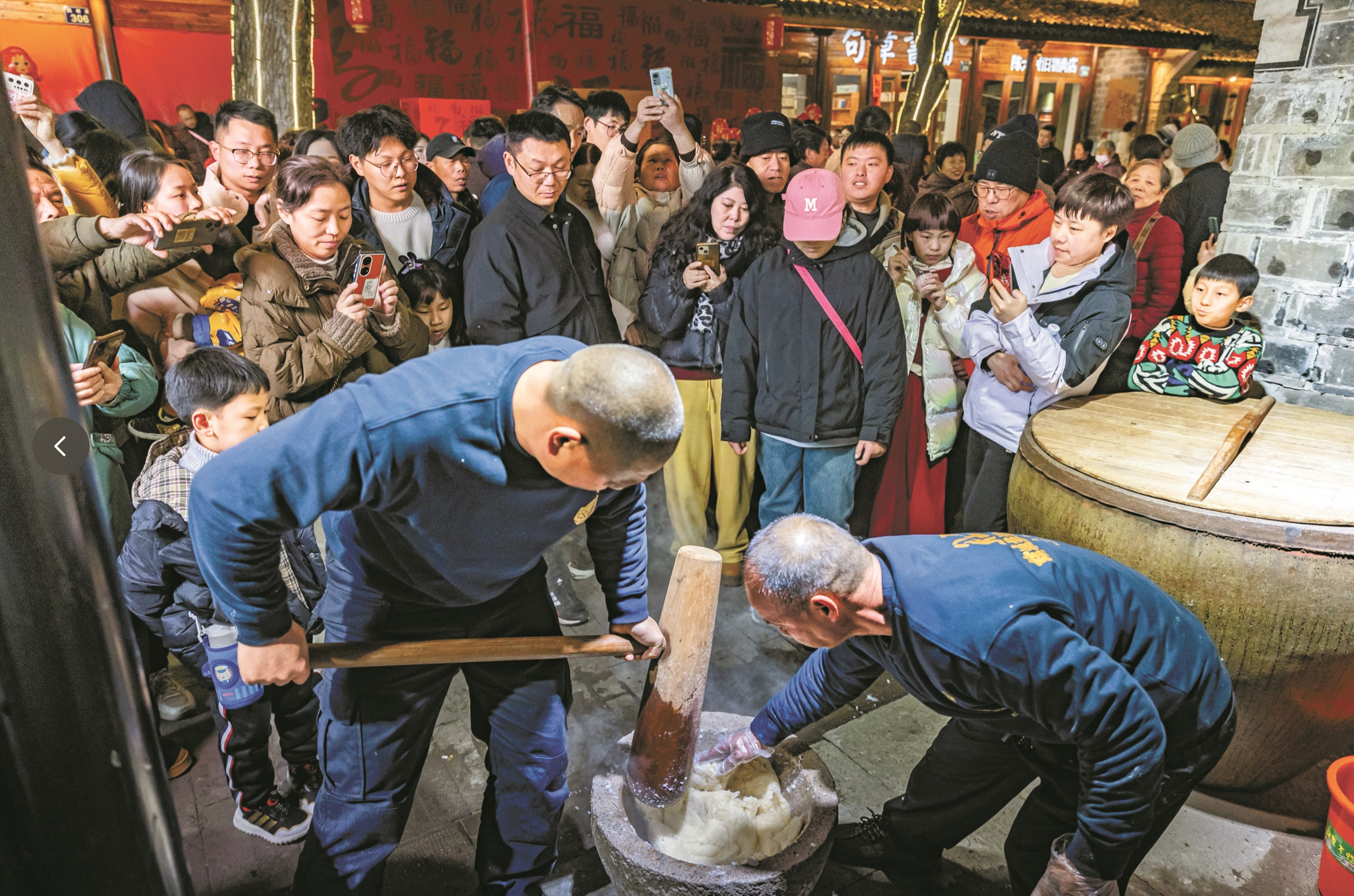 与此同时,慈城古县城旅游公司与当地知名年糕品牌“冯恒大”及宁波知名连锁品牌“三关六码头”强强联手,共同打造了宁波市首个全景式水磨年糕工艺体验馆。在这里,孩子可以亲身体验从识稻谷、磨米浆、蒸粉到打年糕的全过程,在浓厚的年味中感受省级非遗项目“慈城水磨年糕制作工艺”的魅力。