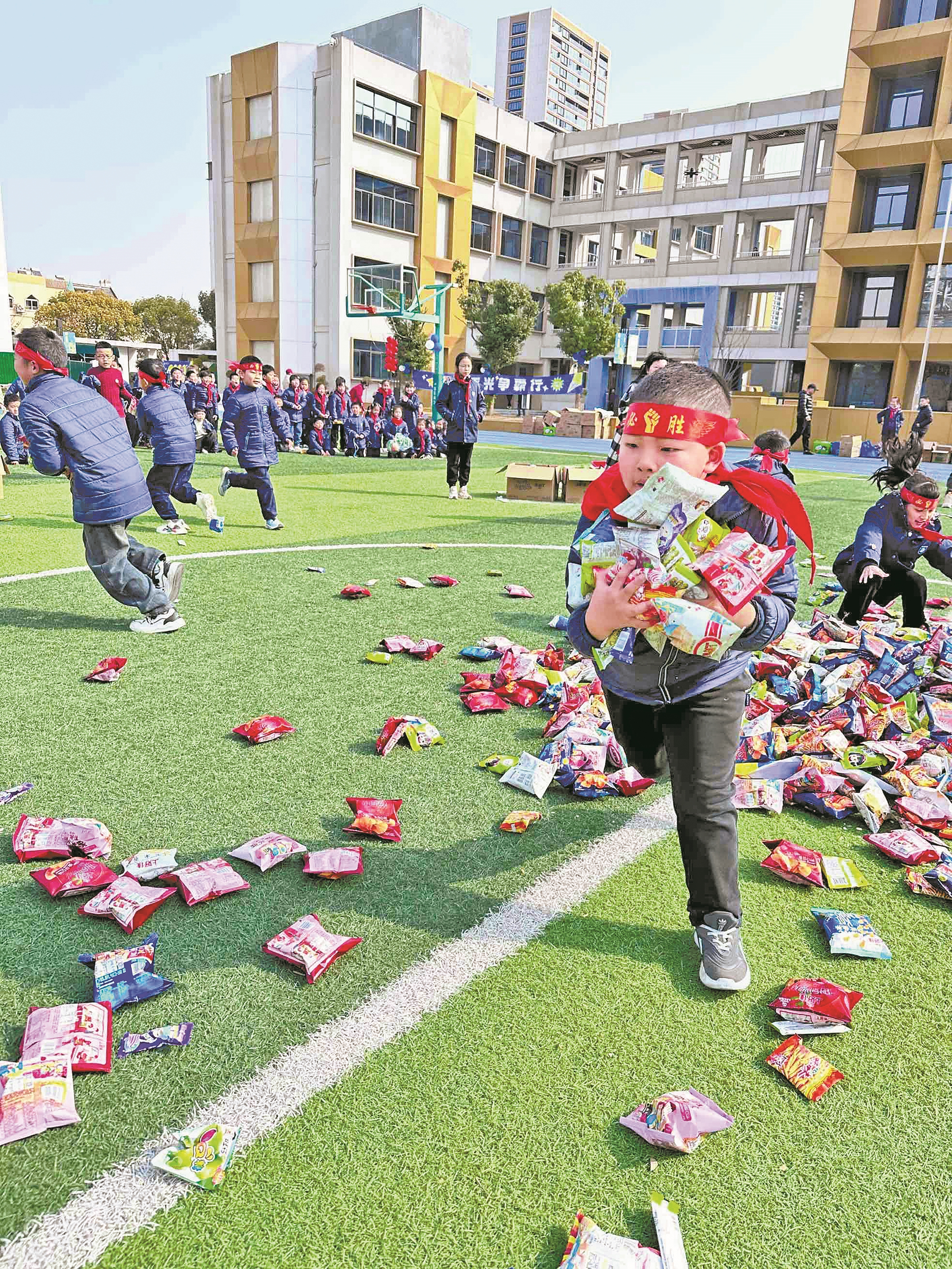 操场上特别设置的“零食补给站”,摆满了各式各样的零食,让同学们目不暇接、兴奋不已。大家凭借自己的努力赢得了专属的零食兑换时间,在指定区域内挑选心仪的零食,尽情享受着努力付出后收获的成就感与快乐。