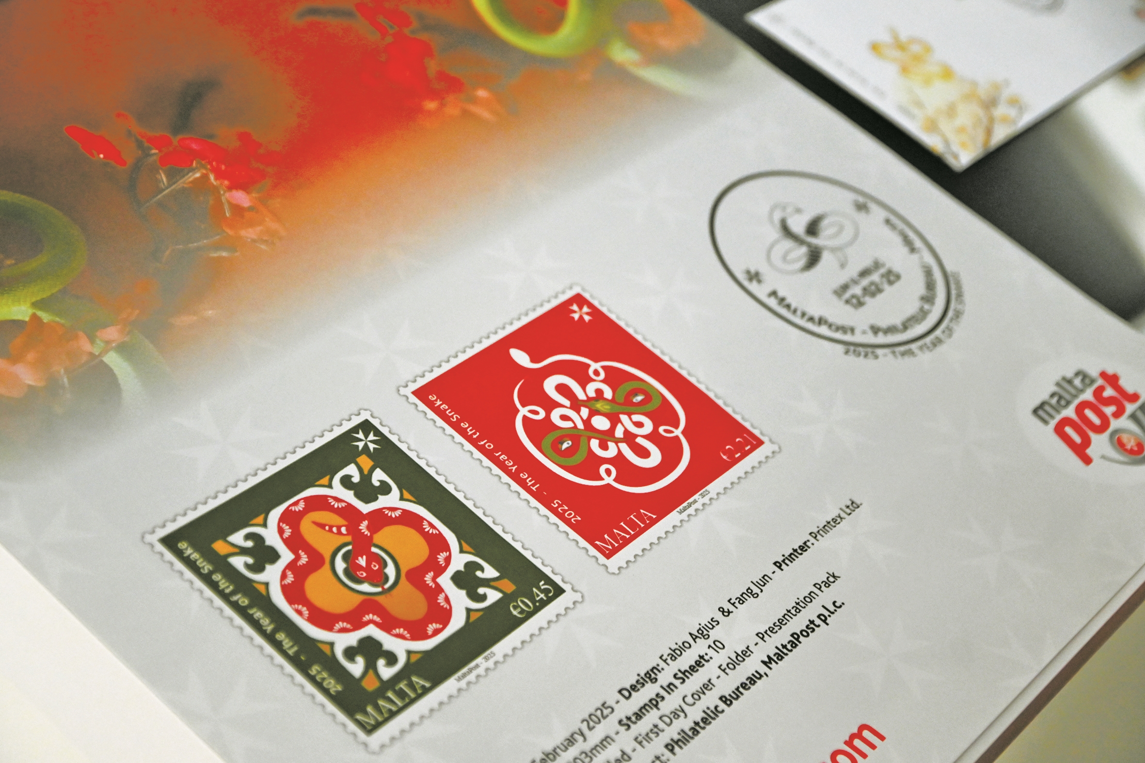 马耳他邮政总局12日在首都瓦莱塔举行蛇年生肖邮票发行仪式。这套蛇年生肖邮票共两枚,分别由马耳他邮票设计师法比奥·阿吉乌斯和中国邮票设计师方军完成。