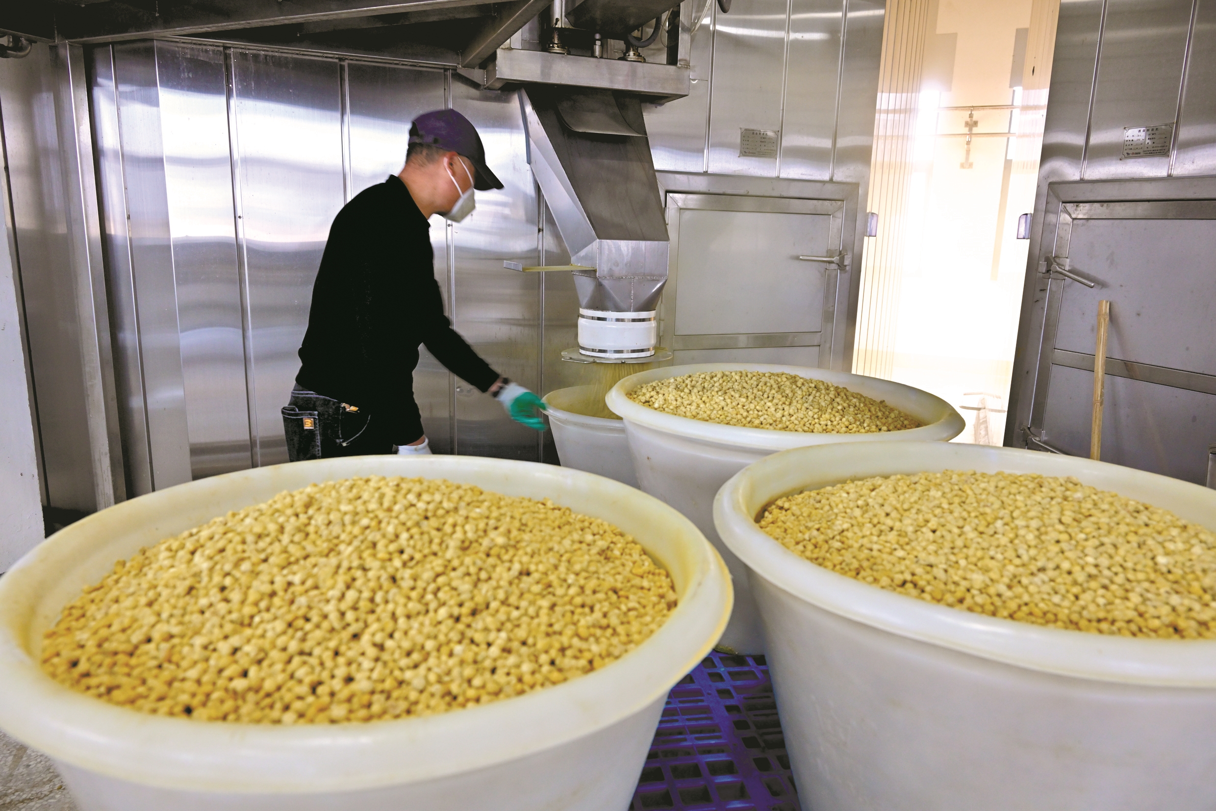 蒸煮、冷却、制曲、压滤、罐装、贴签……昨天,宁波市楼茂记食品有限公司调味品生产车间热气腾腾、香飘四溢,50多名工人分工协作,正在生产海鲜酱油。