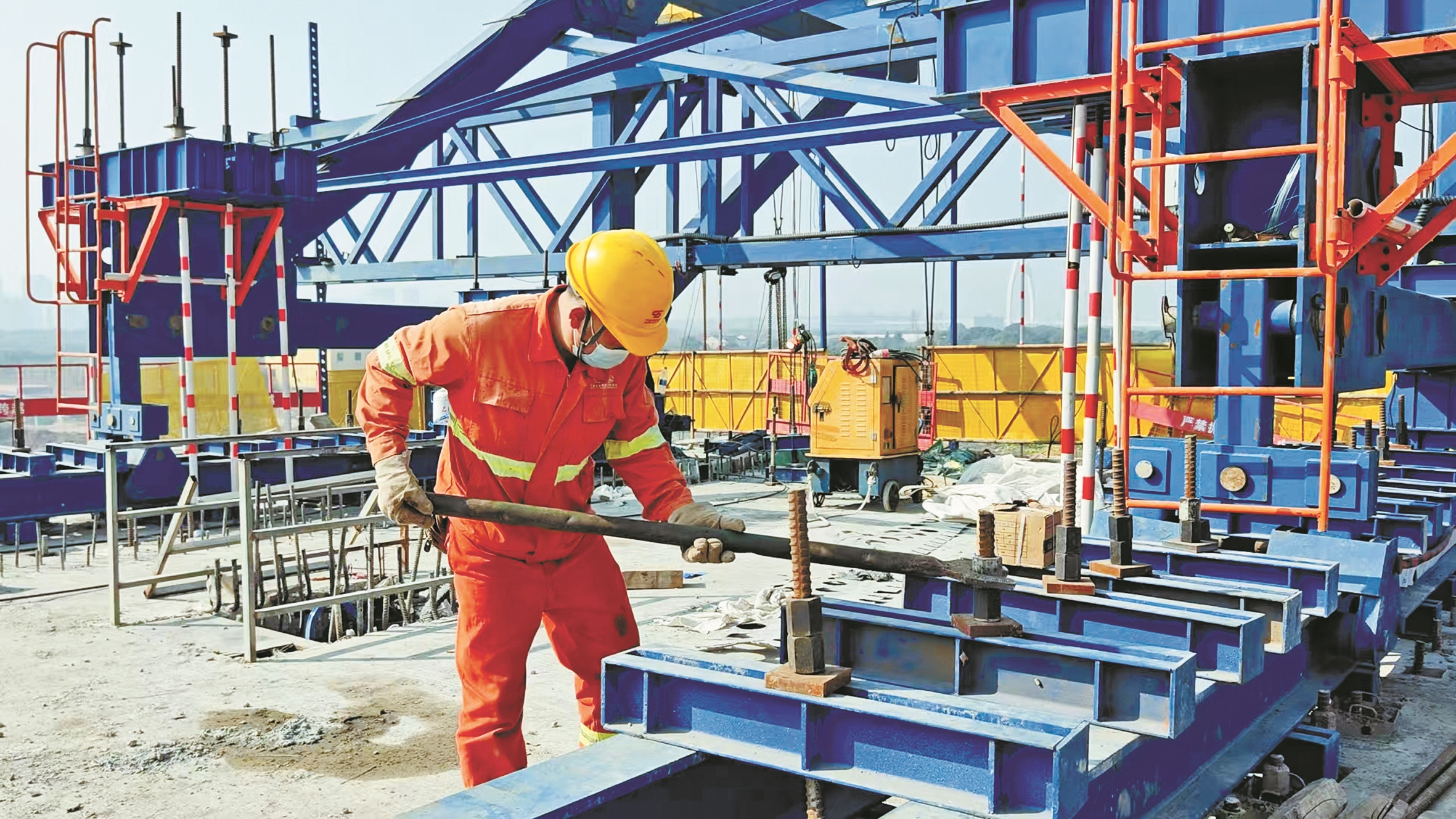 新春佳节在邵家渡大桥建设工地坚守岗位的工人。(尹幸芷 摄)