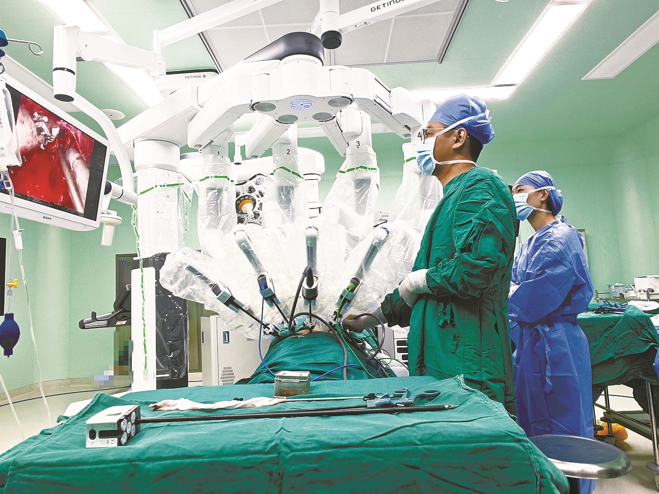 “达芬奇”机器人辅助手术现场。(陈敏 徐晨燕 摄)