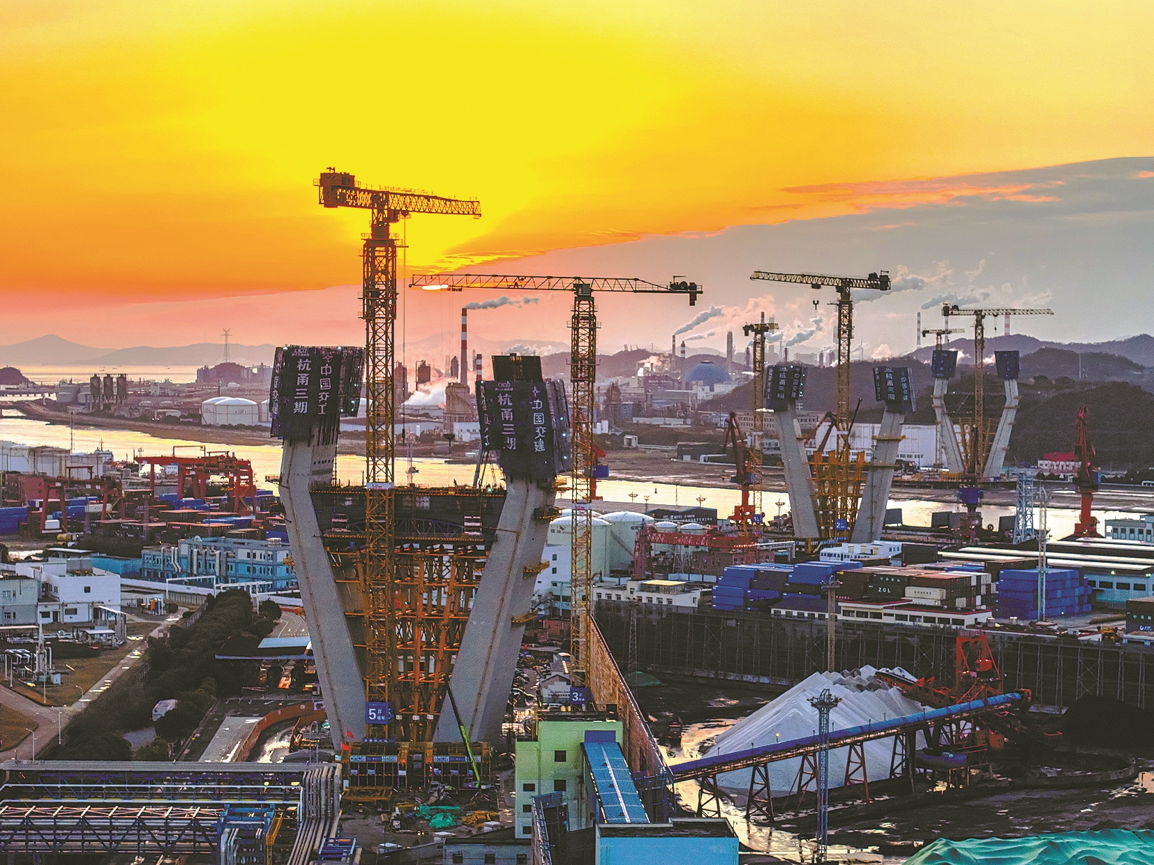 据了解,浙江交通集团杭甬复线宁波三期项目于去年8月全面开工建设,计划于2027年底建成通车。甬江特大桥是该项目的重要节点工程,目前正朝着今年主塔封顶的目标稳步迈进。