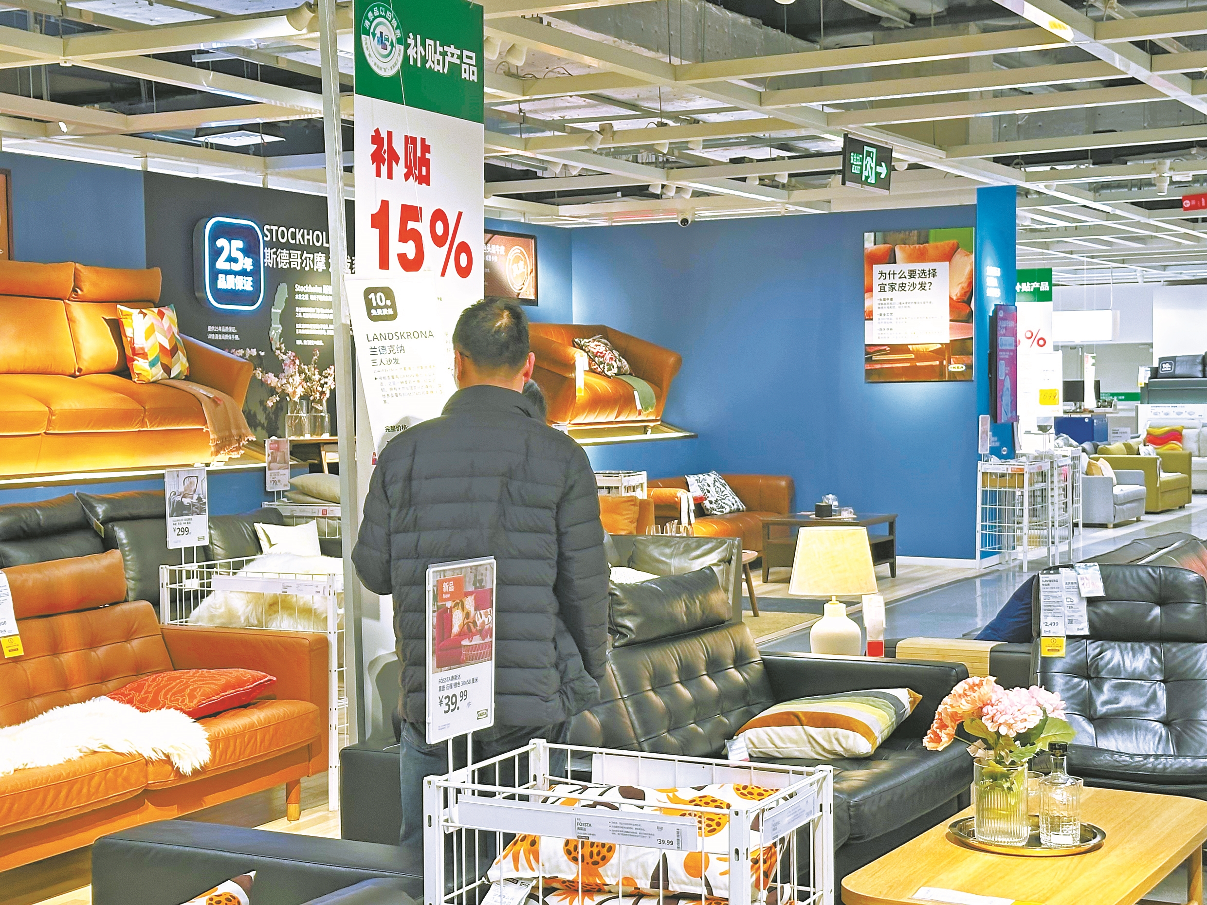 宜家家居宁波商场店内补贴宣传氛围已经非常浓郁,为配合这轮补贴落地,昨日更新了总计7000余款可享受补贴的家居产品。届时,宜家家居可享受补贴的产品数量将占产品总量的60%左右。