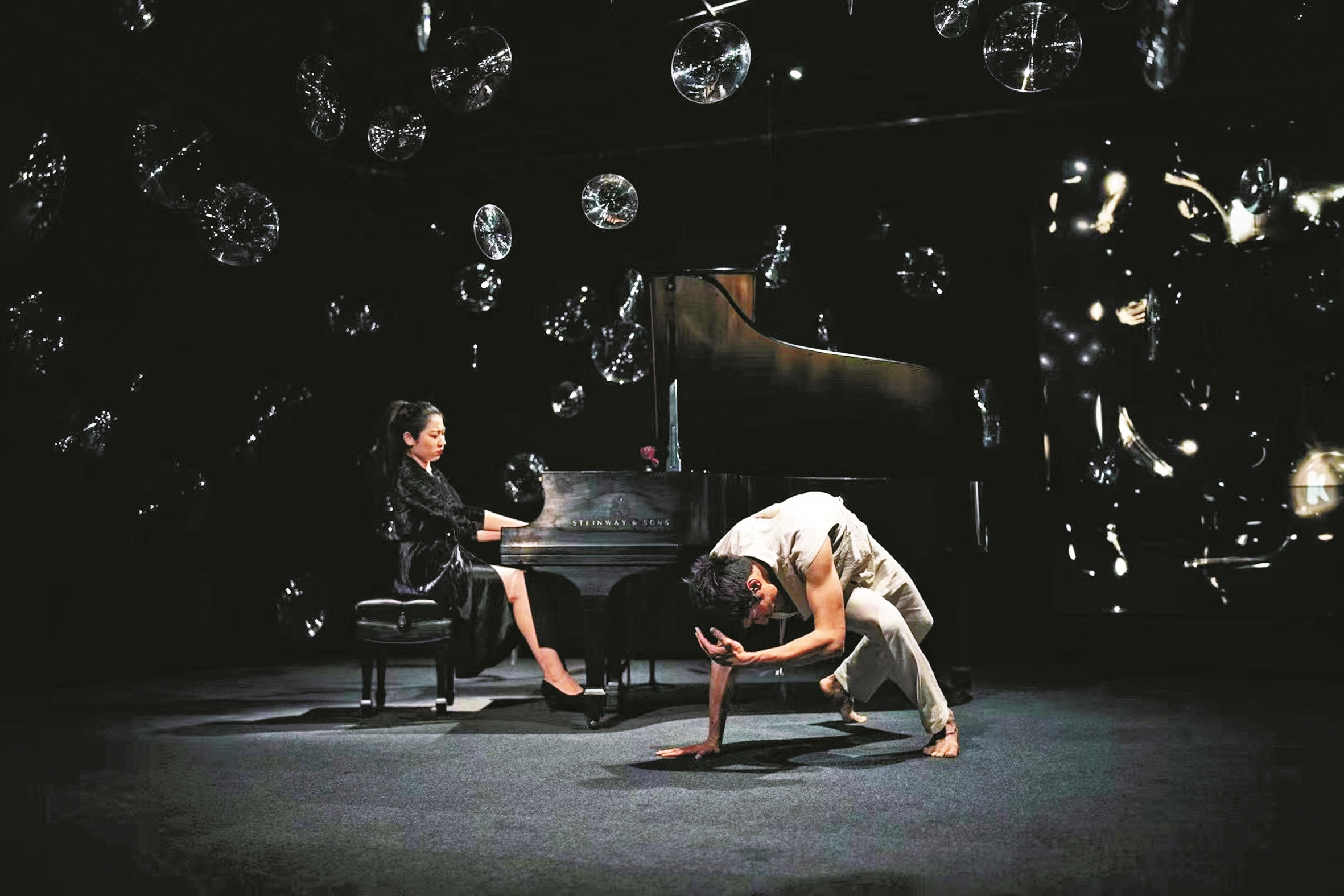 不久前,我在纽约策划了一场沉浸式音乐展览,观众可以在现场的艺术装置中自由穿梭,投影机将我写的诗句手稿洒满墙壁。我演奏普氏作品时,现场的当代舞者即兴表演,观众也可以随意走动,去关注自己感兴趣的部分。通过舞蹈、视觉与空间设计的跨媒介叙事,打破时代隔阂,让有些看起来晦涩的作品,也与当代生活产生共振。