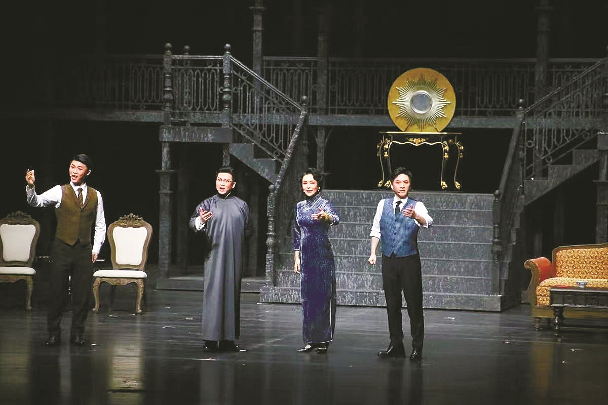 主创首先是对十个剧种做了排列组合,力求把风格接近的放在一起。锡剧、淮剧、沪剧、甬剧等滩簧剧种,舞台语言接近,甚至在音乐特征上也相似,这为人物在剧中开展对话、对唱、合唱提供了无瑕疵结合的基础;京剧、黄梅戏、音乐剧的三重唱、合唱,体现了三个艺术门类音乐可塑性的开掘。当然,也有灵活处理的地方,比如十人合唱“丧钟敲响”,不再是各自唱不同剧种,而是一起用音乐剧的演唱方式演唱。这种在音乐上融合的尝试,是传统戏曲音乐开放、包容特性的展示。任何一个剧种在音乐改革上的进步都体现着剧种的发展,故认为星·杂剧《伪装者》在剧目音乐呈现上的尝试,一定程度上体现着戏曲艺术家们对戏曲突破传统、获得新发展的艺术追求。