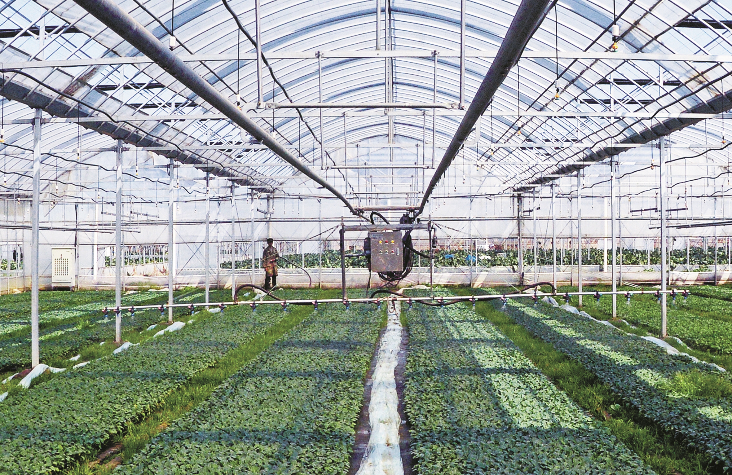 “你看,这是我们买的自走式喷灌机。有了它,浇灌蔬菜苗不仅省时省力,而且节水节能。”桑红杰介绍,这几年,他们还引进新型通风设施、增温补光设备,在玻璃温室大棚内开辟育苗试验田,享受农业科技发展带来的红利。