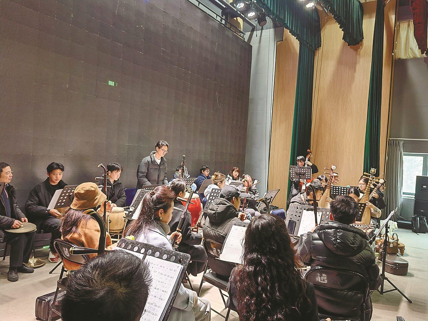 2025年1月16日,宁波市演艺集团的排练厅里,丝竹管弦齐鸣,锣鼓铿锵,鲜少见地迎来了一次特别的录制。经过了4天紧张的排练,宁波市小百花越剧团与宁波市甬剧团两个剧团的乐队组成的40多人民乐队伍,首次“合体”将《将军令》《梅依栏杆》《三六》《红线袄》四首最新编曲的传统小调重新演绎。