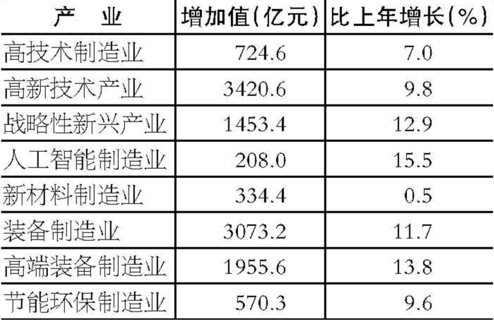新兴动能茁壮成长。全年数字经济核心产业增加值为1425.7亿元,比上年增长7.9%。其中,规模以上数字经济核心产业制造业增加值增长8.0%,增速比规模以上工业高0.3个百分点,拉动规模以上工业增加值增长1.3个百分点。规模以上工业中,装备制造业、高新技术产业增加值分别增长11.7%、9.8%,增速均高于规模以上工业平均水平,增加值分别占规模以上工业的58.5%、65.1%。人工智能、高端装备和战略性新兴产业增加值分别增长15.5%、13.8%和12.9%,均实现两位数增长。新能源汽车产量39.5万辆,增长139.3%,集成电路、工业机器人、智能手机等产品产量分别增长48.9%、34.8%和31.8%。