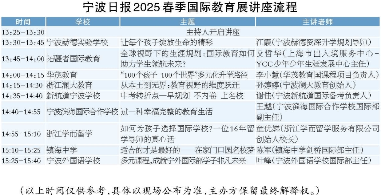 随着宁波5月国际课程自主招生测试的临近,今年宁波热门国际学校的招生政策有何变化?学生备考时有哪些注意事项?4月5日,由宁波日报主办的2025春季国际教育展将在宁波东港喜来登酒店启幕,为家长和学生答疑解惑。