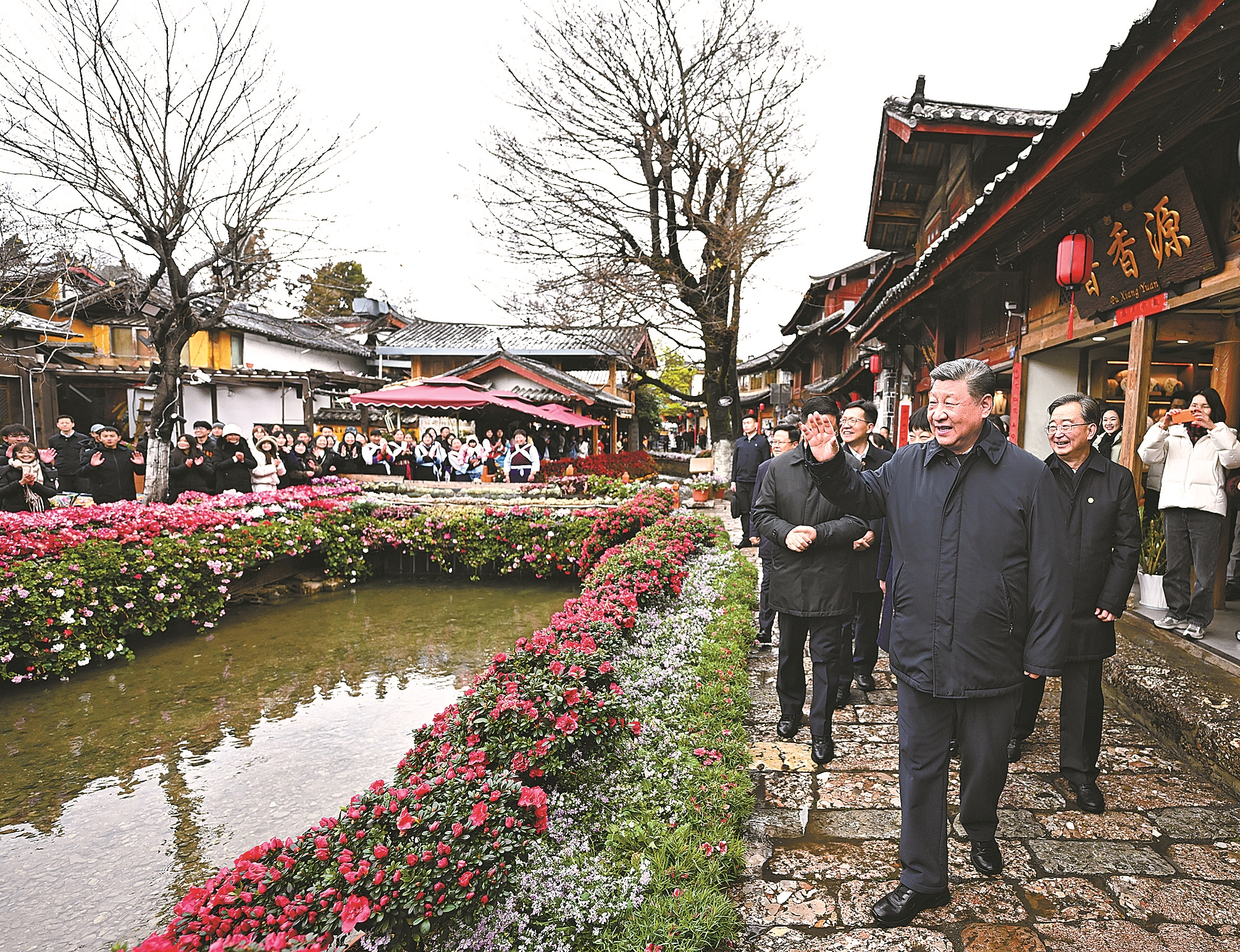 离开时,许多居民和游客围拢过来为总书记送行。习近平激励大家说,丽江有美丽风光,有特色文化,有很高知名度,一定能走出一条持续健康的文旅发展之路。他祝愿丽江人民的生活如同纳西族的“和”姓一样,幸福安康、和和美美。
