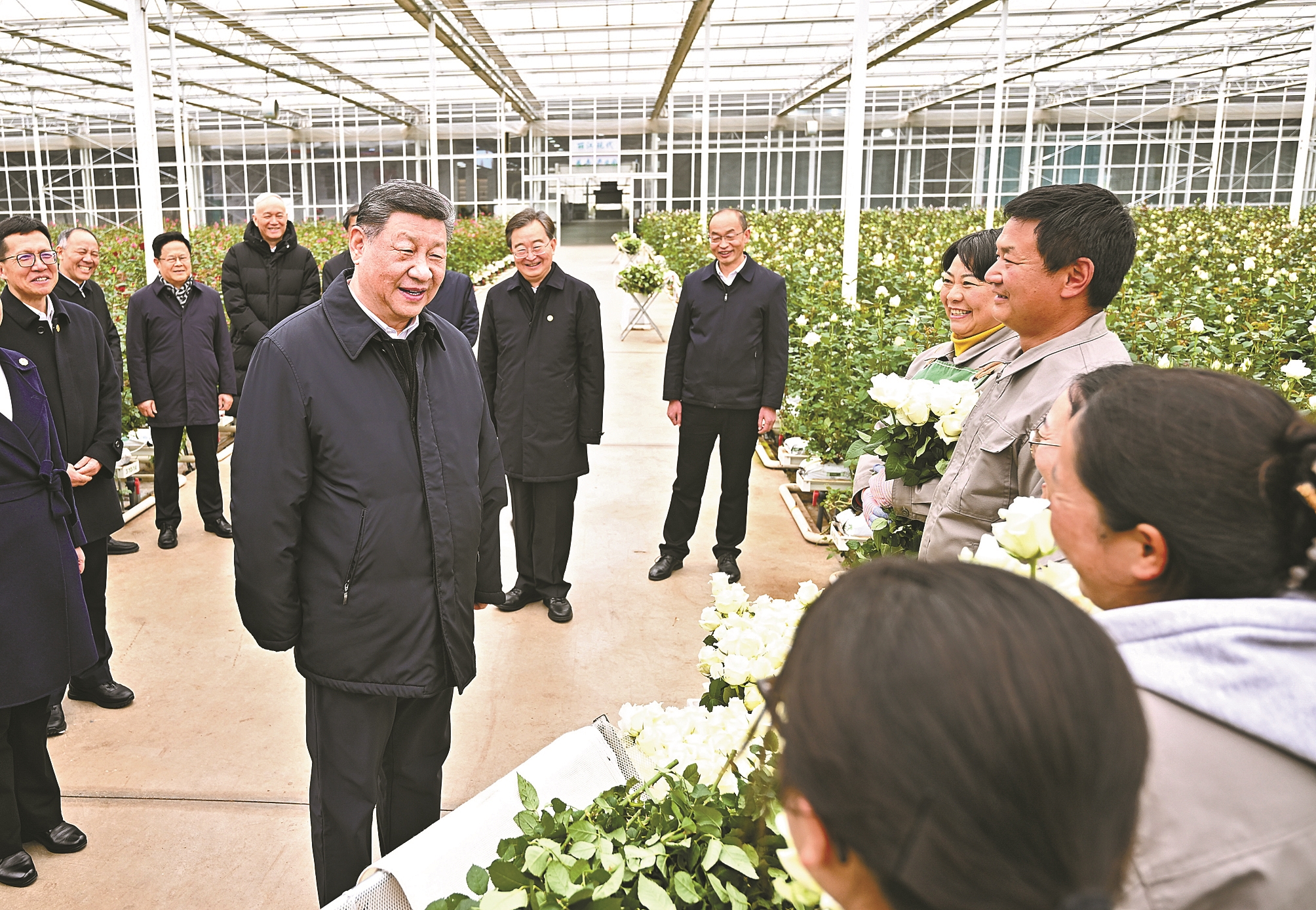 3月19日至20日,中共中央总书记、国家主席、中央军委主席习近平在云南考察。这是19日下午,习近平在丽江现代花卉产业园玫瑰花种植区,同现场村民、技术人员亲切交谈。(新华社记者 燕雁 摄)