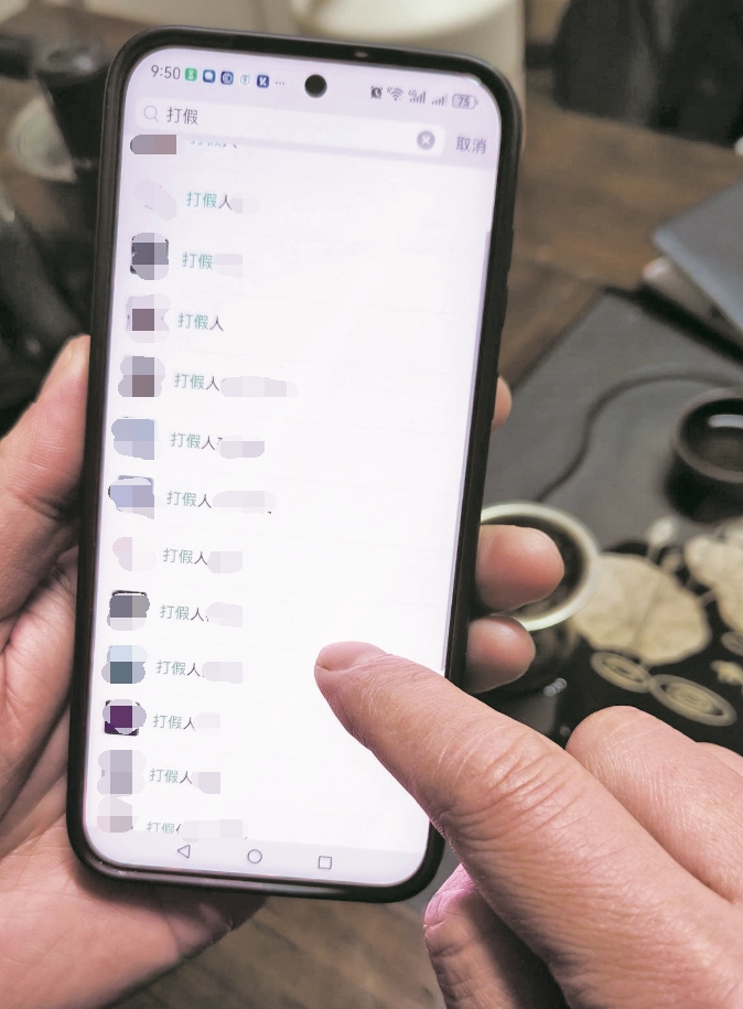 “近一年来,我店铺被职业打假人举报到市场监管部门、要求赔偿且尚未办结的案件,就有好几起。这还不算那些已经与职业打假人协商和解的案子。”说着,老李打开手机微信向记者展示,被标注为职业打假人并添加的好友竟然多达18个。