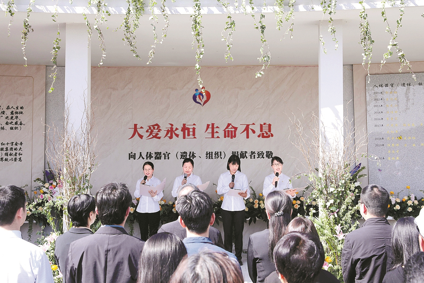 3月25日,奉化区生命礼敬园开园仪式暨人体器官和遗体(组织)捐献缅怀活动在奉化区福果苑公墓举行。逝者骨灰被安葬于树下、草坪中间,与大地融为一体,不立碑,不留名。轻轻盖上土,放上一束菊花,在礼仪师的引导下,送别亲人在此长眠。
