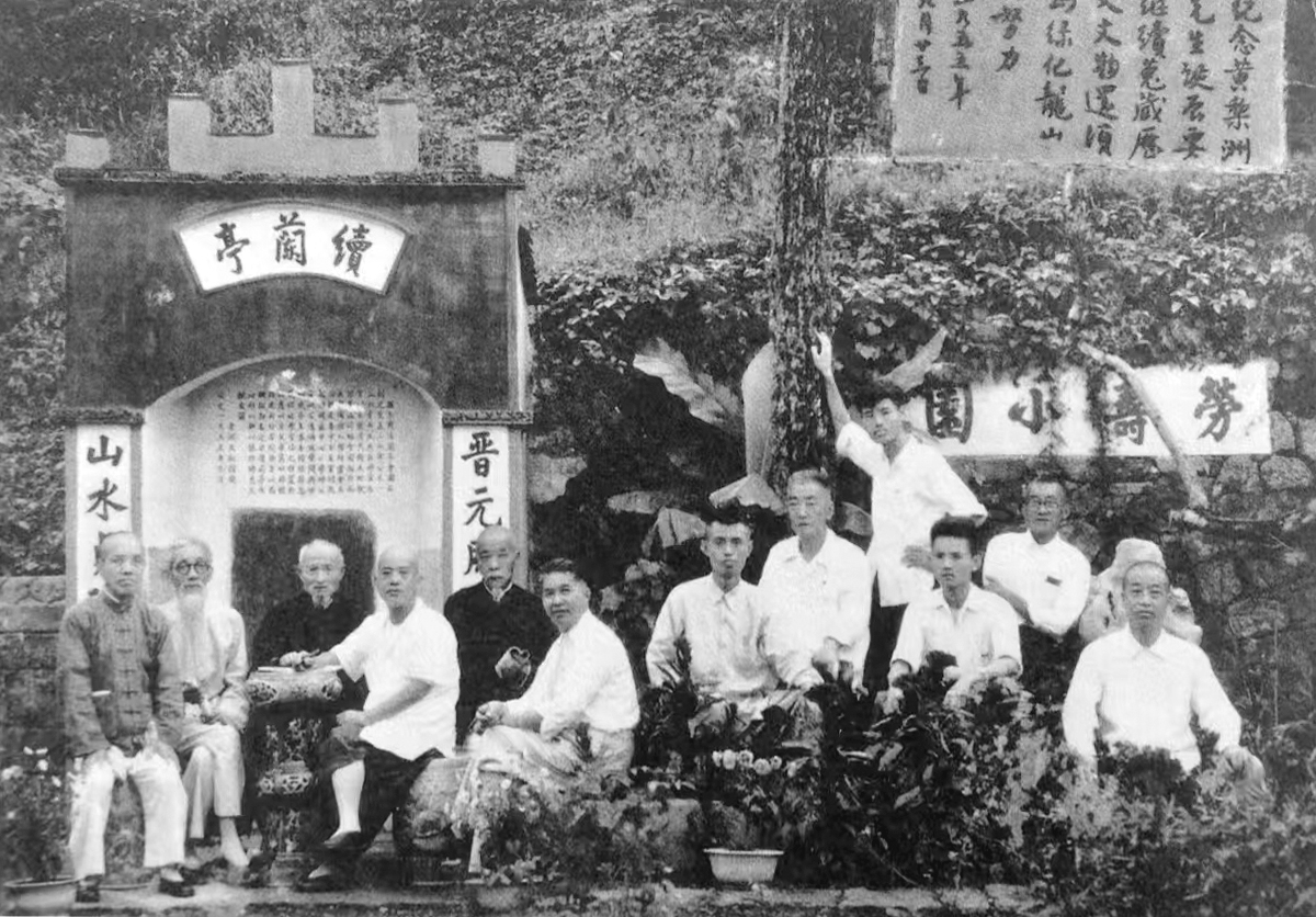 1955年春,余姚文化界人士阮伯康、王槐南、赵裕春、仇庆冠、王叔平、姜枝先等十余人,移步龙泉山中天阁旁的劳寿小园,再续兰亭,修禊感怀,诗酒清谈。