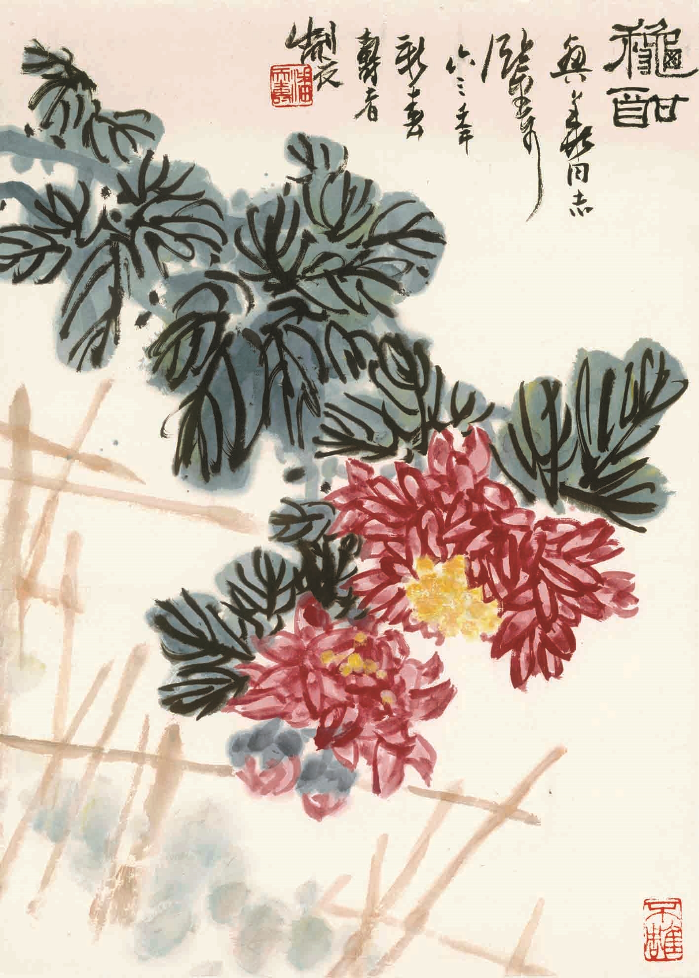 潘天寿曾比喻中国画如“赏心只有两三枝”,反对满纸铺陈。他的艺术观与人生观高度统一——不求繁复,但求深刻;不慕浮华,唯重境界。在传统与现代的十字路口,他选择深耕民族艺术的土壤,最终长成一座高峰。