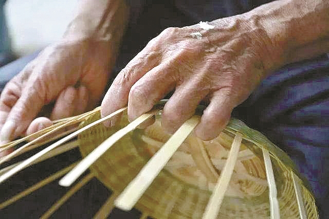 地上的篾条堆了起来,长的,短的,带皮的,不带皮的,粗细均匀,青白分明,散发出竹子特有的清香。阿爷起身,抖落身上青绿色的竹屑,两手一会儿交叉,一会儿来回搓,不知是在舒缓劈篾后的疲劳,还是为接下来的编篾热身。阿爷个头不高,那双手却特大,手掌厚,手指长,指关节粗且弯曲,一用劲,手背上青筋暴起,像爬进了好几条蚯蚓。手上遍布小沟小壑,老树根般粗糙,怕影响做活,阿爷每每把指甲剪得光光的。